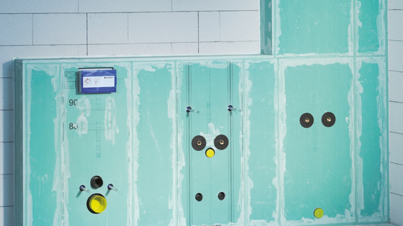 Die Installationssysteme Geberit Duofix und Geberit GIS sind in Kombination mit geeigneten Trennwänden bis zu 90 Minuten lang für die Abschottung geeignet.